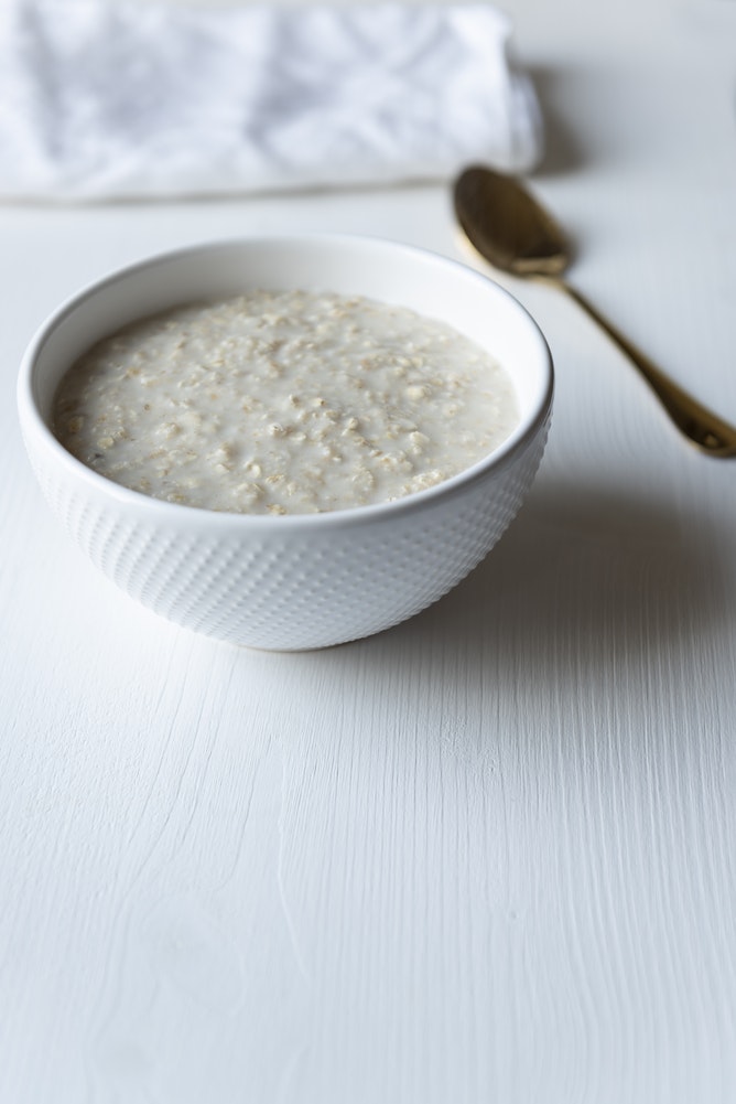 Basta prendere due o tre cucchiaiate di fiocchi d’avena bio e mescolarle con mezza tazza di latte di soia o di mandorla (mantenendo - circa - la proporzione di una parte di avena e due parti di liquido). Mettiamo in un pentolino e scaldiamo a fuoco lento, fino a che i fiocchi non avranno assorbito tutto il latte e si saranno ammorbiditi. In alternativa possiamo anche mettere in microonde per un minuto una tazza con avena e latte. O, ancora, possiamo mischiare l’avena con il latte la sera prima e lasciare riposare in frigorifero per una notte: al mattino non ci sarà bisogno di cottura. Possiamo addolcire con del miele o con dello sciroppo d’acero, senza esagerare.