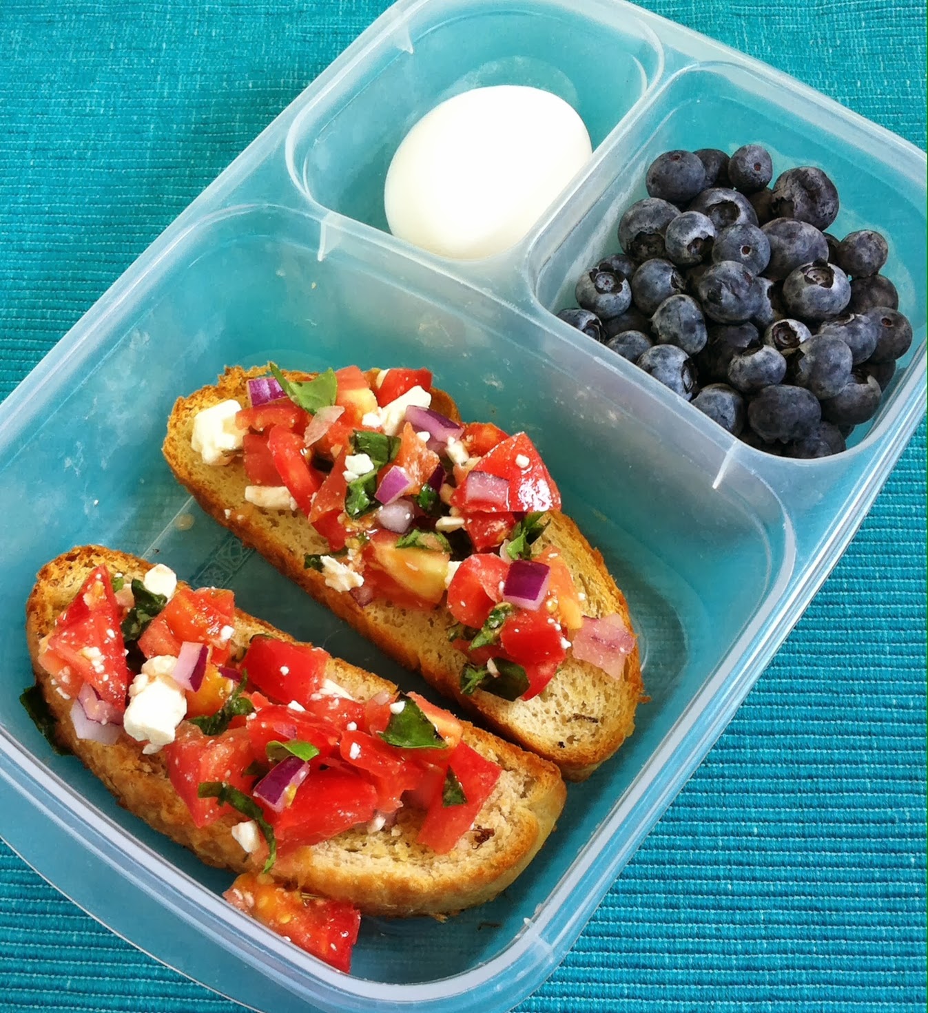 - Due bruschette accompagnate da verdura fresca oppure da tanta frutta appetitosa come le fragole o l’uva. E per completare un ovetto sodo!