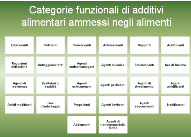 Gli additivi alimentari sono sostanze studiate e documentate sotto il profilo tossicologico e il loro uso è costantemente sotto il controllo di Organizzazioni Internazionali e Nazionali.