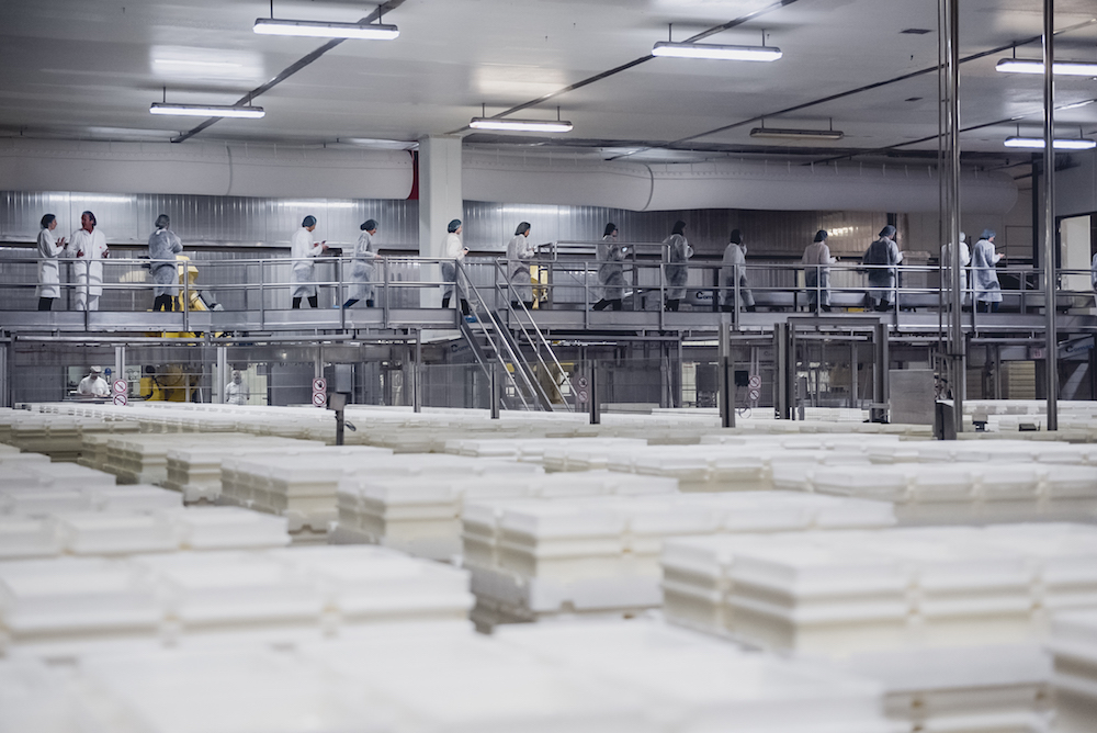 Il processo a parole è abbastanza semplice, ma vi assicuro che girare per lo stabilimento, percepirne la grandezza (qui ogni giorno arrivano 1,2 milioni di litri di latte e ogni anno vengono prodotti 15000 tonnellate di crescenza!) guardando le diverse fasi di lavorazione, fa capire come sia complesso il processo di realizzazione.