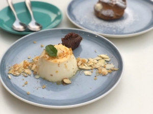 Non ha niente a che vedere con il sanguinaccio, e il nome dipende solo dal colore! Si tratta di una crema dolce a base di cacao e cannella e la si prepara così: uniamo in una ciotola 200 grammi di zucchero di canna integrale con due cucchiaini di cannella, 40 grammi di maizena e 70 grammi di cacao amaro, quindi versiamo 500 grammi di latte di mandorla mescolando con una frusta il tutto. Facciamo addensare in un pentolino il composto e una volta caldo aggiungiamo 80 grammi di cioccolato fondente a pezzetti e 30 grammi di margarina, mescolando e facendo sciogliere bene. Trasferiamo in una tazza e facciamo riposare in frigorifero per un paio d’ore prima di servire.