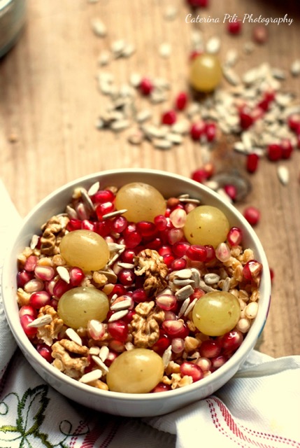 - Farro con uva, melograno e noci: altrettanto semplice ma d’effetto (e di gusto) è l’insalata di farro con l’uva, alternativa perfetta alla pasta. Bollite il farro (mescolandolo magari con orzo e riso) secondo le istruzioni di cottura, quindi mischiatelo in una ciotola con uva a metà, chicchi di melograno e noci, condendo con olio, salsa di soia e pepe. Gnam!