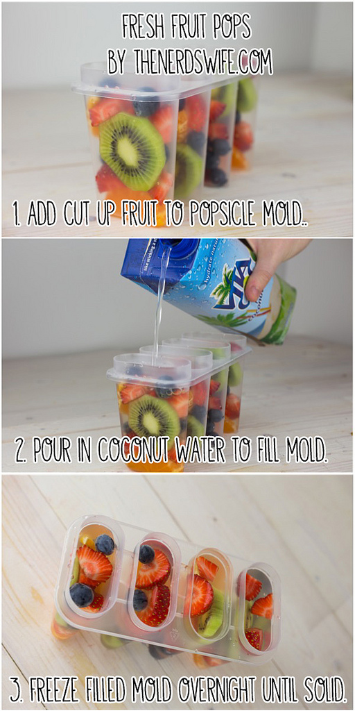 - E se la macedonia si presentasse come gelato? Preparare i ghiaccioli di frutta fresca è facilissimo. Semplicemente, proporreste ai vostri bimbi una macedonia in forma differente... Tagliate come al solito la vostra frutta preferita, quindi riempite con essa le formine per ghiaccioli e completate con dell'acqua di cocco. Fate congelare per almeno una notte e il gioco è fatto!