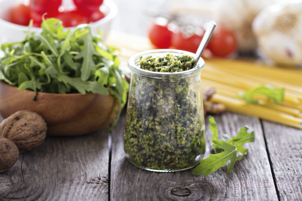 - Dal sapore particolarissimo è la rucola, verdura invernale che si presta benissimo alla preparazione del pesto. Insomma, al posto dell’estivo basilico, l’invernale rucola. Frullate in un mixer 100 grammi di rucola con 50 grammi di mandorle, tre cucchiai di olio evo, il succo di mezzo limone e un po’ di formaggio grattuggiato. Condite subito la vostra pasta, oppure mettete il pesto in un barattolo ermetico e conservatelo in freezer per un’altra serata.