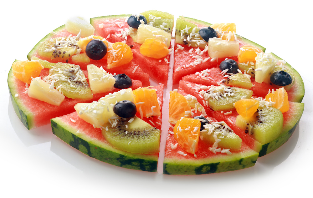 - In estate, poi, si può approfittare della presenza delle angurie: tagliandone una bella fettona si otterrà la base perfetta per una pizza che stavolta sarà interamente di frutta!