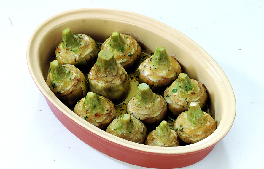 Con i carciofi romaneschi freschi, invece, è indicata questa ricetta al forno. Pulitene dodici e fateli rosolare un attimo in padella con dell'olio e dell'aglio. Trasferiteli poi in una pirofila e irrorateli con olio evo e acqua fino a coprirli. Metteteli in forno a 170 gradi coprendoli con un coperchio e cuocete per un'oretta.