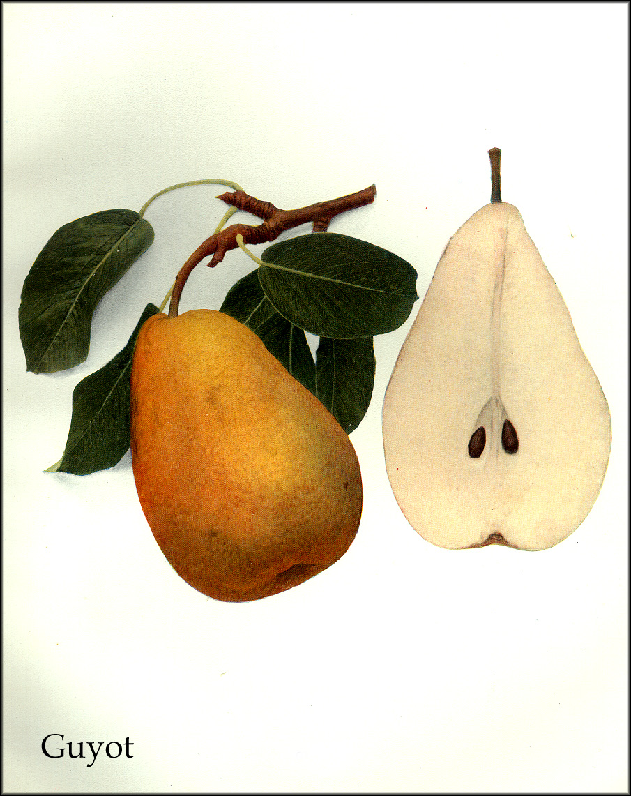 Pera Guyot: come la Santa Maria è una pera estiva, e quindi precoce. E infatti è proprio detta “Williams Precoce”, per la sua somiglianza con la pera più famosa. La polpa è fragrante e porosa e la buccia giallastra, e il suo peso è medio. Come la Williams è buonissima in macedonie, succhi, frullati e smoothies.