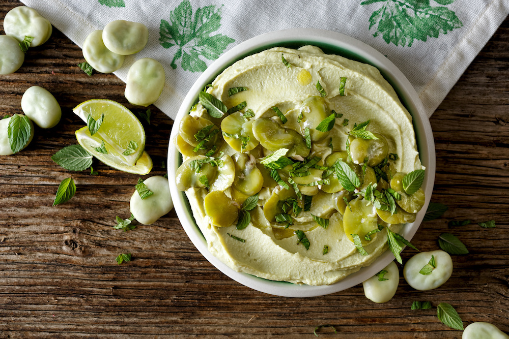 - Perfetto per un contorno, come salsa o come snack (da mangiare con qualche crostino fatto in casa o spalmato su fette di pane arabo) è l’hummus, in questo caso di fave. Prendetene 300 grammi e lessatele in acqua per venti minuti, quindi frullatele insieme a due cucchiai di salsa tahina, il succo di mezzo limone e un pizzico di sale, aggiungendoci anche mezzo spicchio d’aglio sbucciato se ne gradite il sapore.