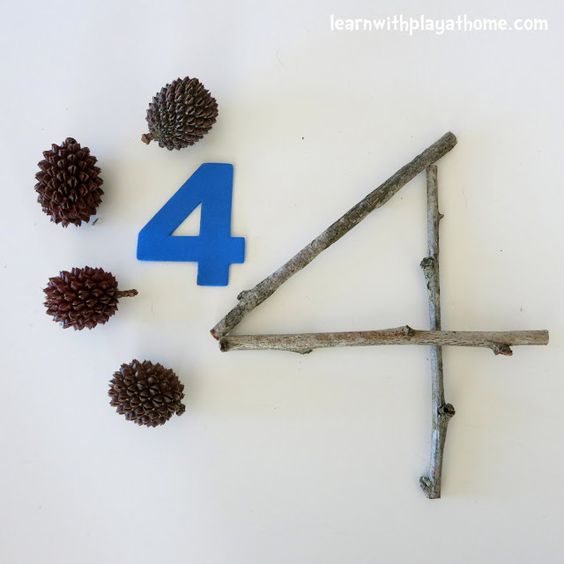 - E per imparare anche la scrittura dei numeri, questi possono essere composti con i fili d'erba o con i legnetti, in attesa di imparare a scriverli con la penna.