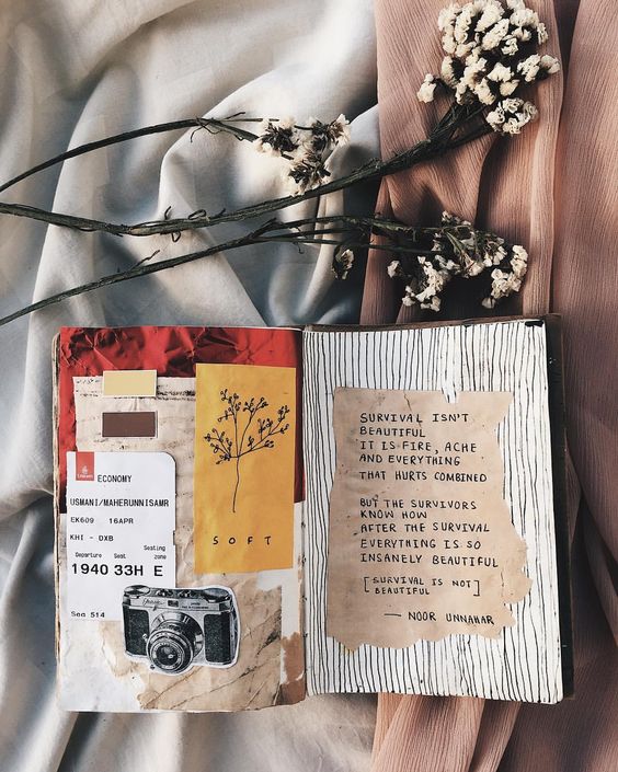 Anche i collage sono ottimi per iniziare: possiamo realizzarli astratti, con le immagini che ci capitano tra le mani, oppure utilizzare biglietti aerei, del treno, stralci di giornale con parole particolarmente toccanti, fotografie…