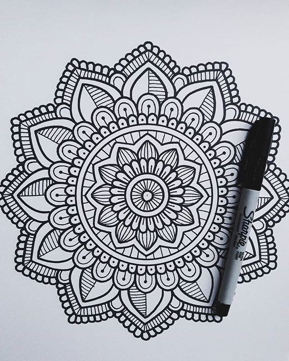 Possiamo poi cominciare con dei mandala, geometrici e ripetitivi, da lasciare in bianco e nero oppure colorare all’interno degli spazi.