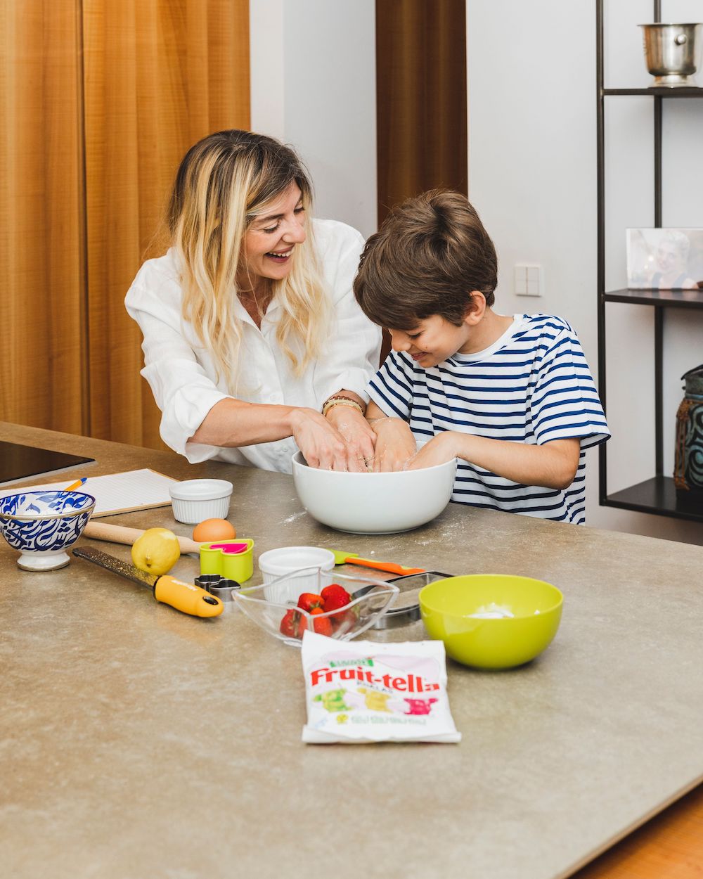 Fruittella (che io adoro — adoro! — da quando sono bambina) mi ha infatti proposto un’esperienza-pasticceria per trascorrere un pomeriggio mamma-figlio e il risultato è stato strabiliante. Spoiler: Luca ha superato le sue paure e le sue fisse e da bambino schizzinoso si è calato nei panni di pasticciere sgangherato.