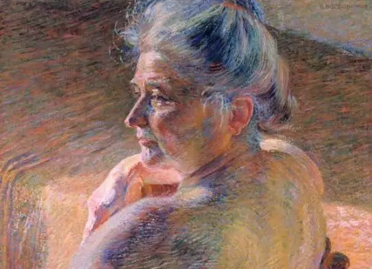 Questo ritratto di persona senile potrebbe risultare semplice e delicato, ma ha anche un significato in più, dato che Umberto Boccioni ritrasse qui la madre, sua modella in svariate opere con tecnica divisionista.