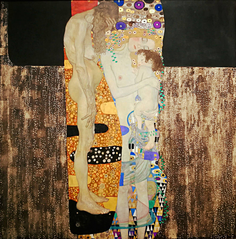 Spesso si parla della "Maternità" di Gustav Klimt, ma in realtà ci si riferisce a "Le tre età della donna", un'opera d'arte allegorica e simbolista davvero potente che tratta anche la maternità, qui ritratta dolcemente come la donna adulta che culla la donna bambina. Le due sono osservate alle spalle dalla donna anziana, simbolo dell'età che inesorabilmente avanza.