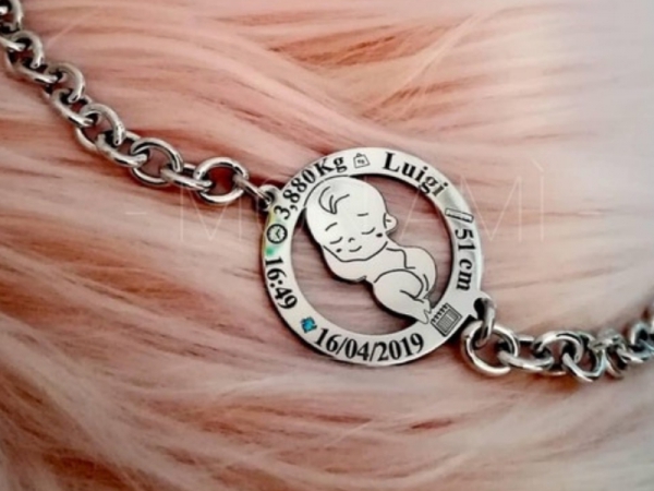 Elegante, leggero, unico, garbato e preziosissimo, per materiale e per emozioni racchiuse: un bracciale nascita che è davvero personale e che durerà per sempre, per portare sempre con noi le informazioni più belle, quelle che abbiamo scolpite nella mente e che ora trovano spazio incise su un oggetto meraviglioso e quotidiano.