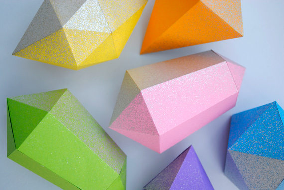 - Delle gemme che luccicano, preziose e bellissime: bastano dei fogli di carta spessa e colorata, delle forbici e della colla e i brillantini. Qui troverete i template da stampare per ritagliare la forma delle pietre, da ripiegare e incollare. Dopodiché sbizzarritevi con i glitter, per rendere ancora più fantastiche le vostre gemme!