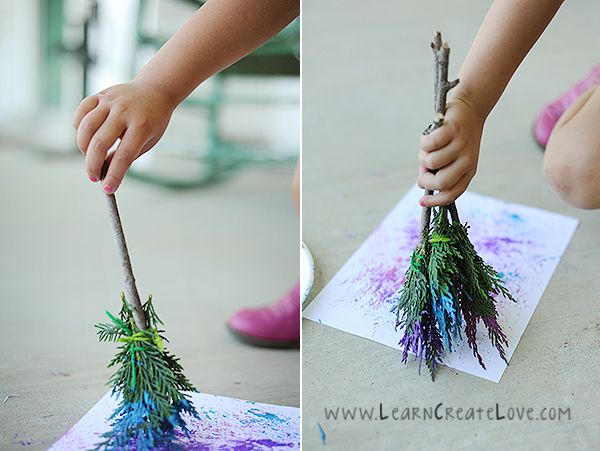 5. Giochi di rami: un altro modo per trasformare la passeggiata in arte è raccogliere più rami d'abete possibile, da unire poi a casa con un filo per creare delle piccole "scopine" da utilizzare come insoliti pennelli!