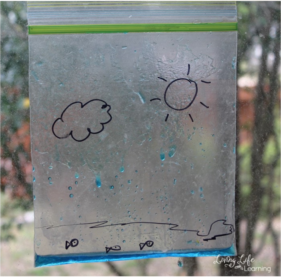 Per capire come funziona il ciclo dell’acqua sul nostro pianeta, bastano una busta per la conservazione dei cibi e dell’acqua.