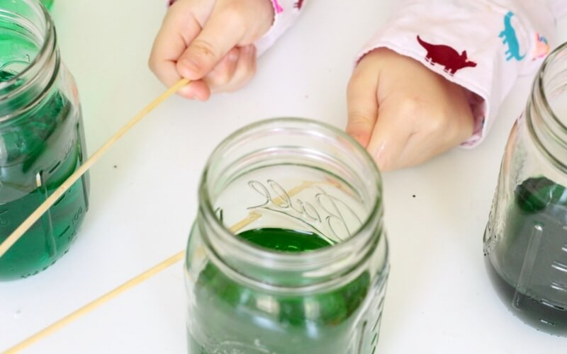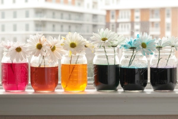 Bastano dei barattoli, dell’acqua, del colorante alimentare e dei fiori bianchi. In ogni barattolo mettiamo dell’acqua con qualche goccia di diverso colorante alimentare. I fiori andranno poi appoggiati ognuno in un barattolo e cambieranno, dopo qualche ora, colore dei petali! In questo modo i bambini vedranno che anche i fiori bevono!