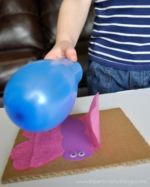 Un primo approccio con l’elettricità può essere fatto attraverso questo esperimento: facciamo ritagliare al bimbo da un foglio di carta velina due ali e incolliamole su un cartoncino incollandole solo per il lembo interno. Gonfiamo poi un palloncino: avvicinandolo, le ali si solleveranno!