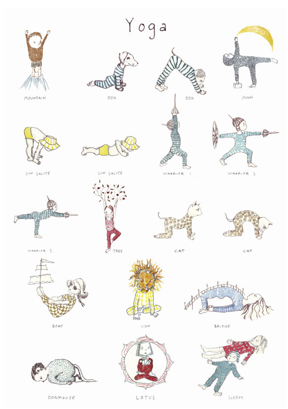 Lo yoga non è solo per adulti, ma anche per bambini, e come per noi adulti è un’attività non solo sportiva ma soprattutto rilassante. Troviamo quindi libri che ci spieghino come svolgere un po’ di questa pratica insieme ai nostri bimbi (come questo) oppure cerchiamo tavole simpatiche che coinvolgano i più piccoli, come questa: