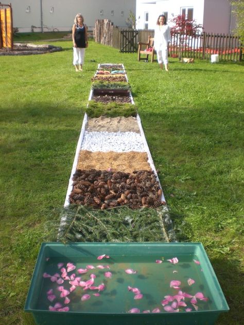7. E non dimentichiamoci dell'acqua: prendiamo spunto da queste maestre che hanno pensato all'acqua come ciliegina sulla torta del loro sensory path! Svolge la funzione sia di strumento per lavare i piedi, ma anche come ulteriore stimolo sensoriale.