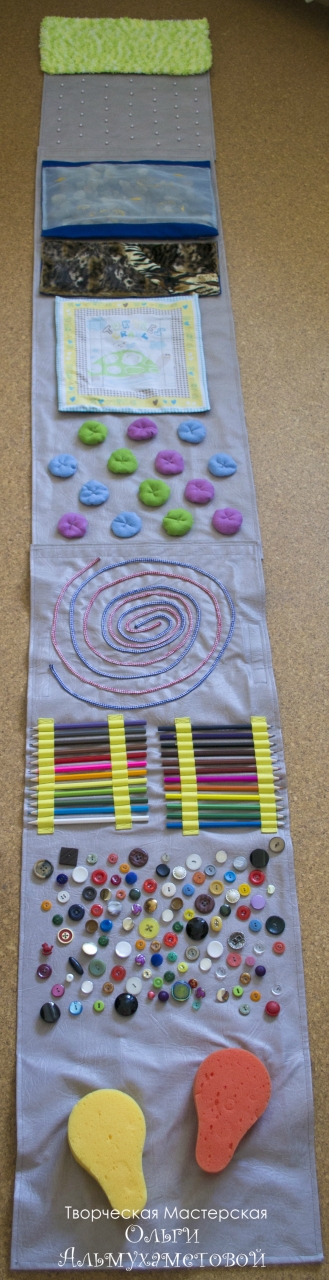 1. Ho voluto realizzare un sentiero sensoriale per la nostra taverna con materiali che avevamo in casa: ho scelto come base del cartone che abbiamo ritagliato e poi incollato per ottenere un rettangolo lungo. Abbiamo poi cercato insieme materiali come spugne, stoffe, specchi che potessero fornirci sensazioni diverse una volta che ci si camminasse all'interno. Ho fatto si che i bimbi lo facessero da soli quindi il risultato non è esteticamente dei migliori ma l'obiettivo non era quello di creare un oggetto decorativo...