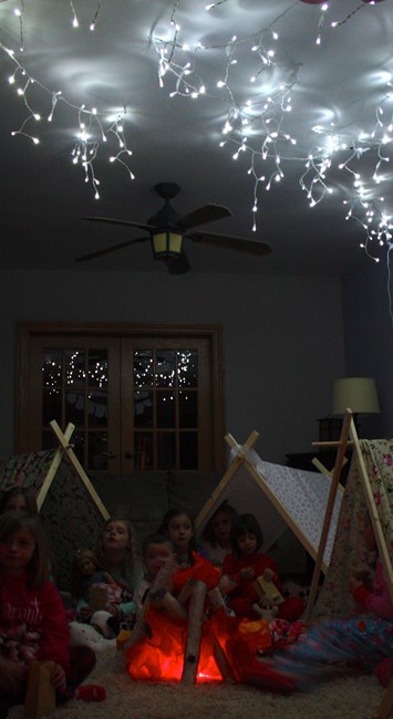Il primo passo fondamentale è dotare il salotto, o la camera, di una tenda: quella da campeggio classica (non necessitando in casa di paletti da infilare nel terreno) va benissimo, e rende il tutto ancor più verosimile.