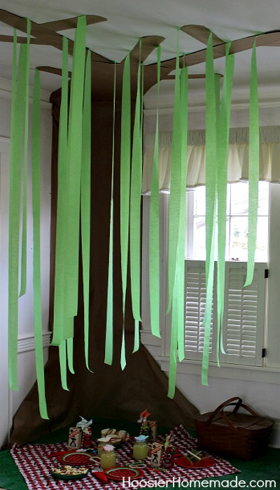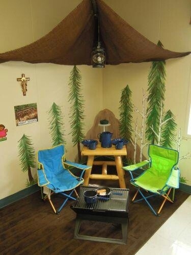 Per completare anche l'ambiente circostante, pensate a tutto ciò che è possibile fare in campeggio e ricreatelo al chiuso. Ad esempio, un angolo per il picnic...