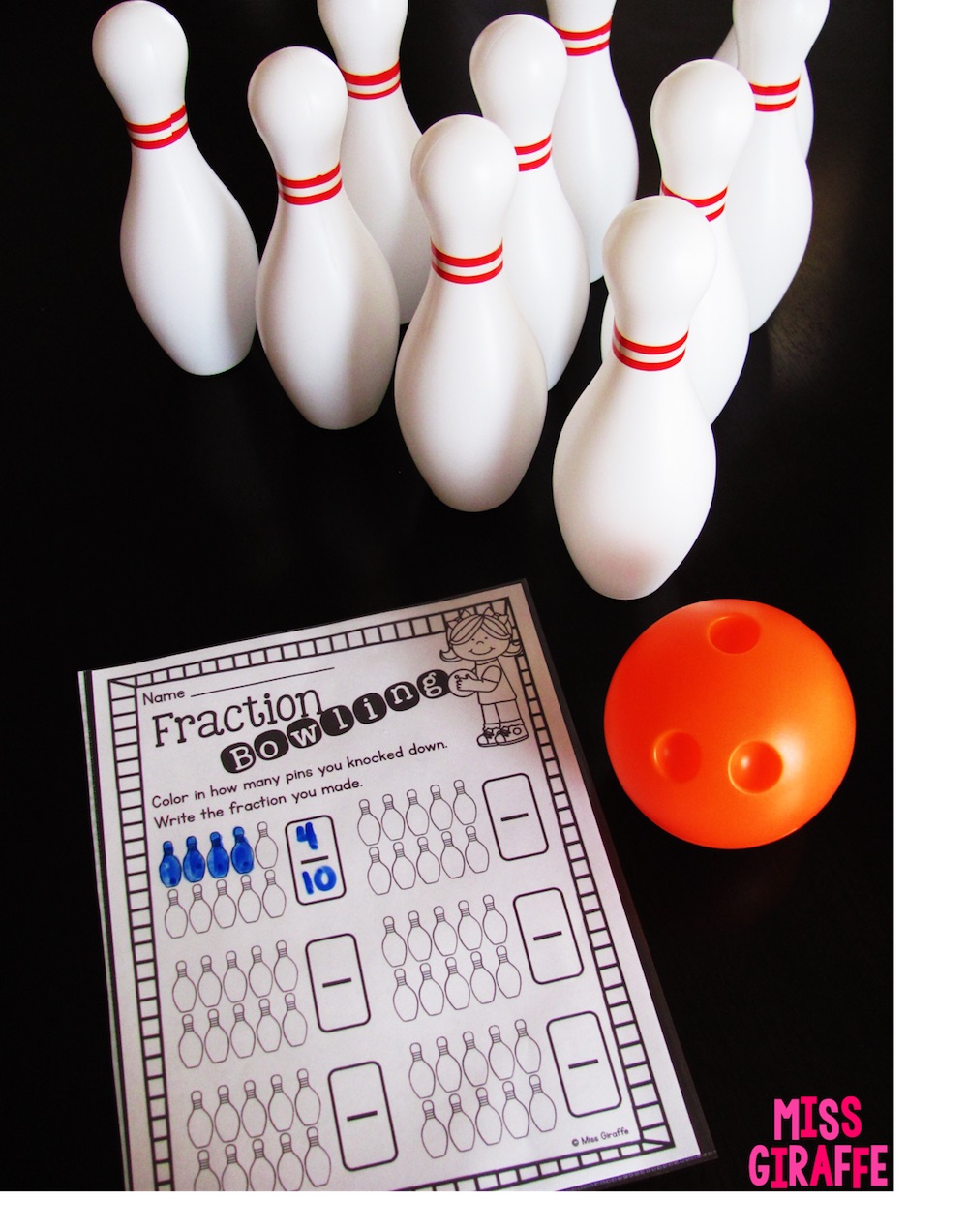 Infine, il gioco casalingo del bowling: facciamo una bella partita a bowling, preparando prima un documento nel quale i bimbi poi potranno scrivere le frazioni. Perché questo gioco si presta bene alle frazioni: i birilli sono sempre 10, e quelli che cadono o rimangono in piedi sono una determinata frazione!