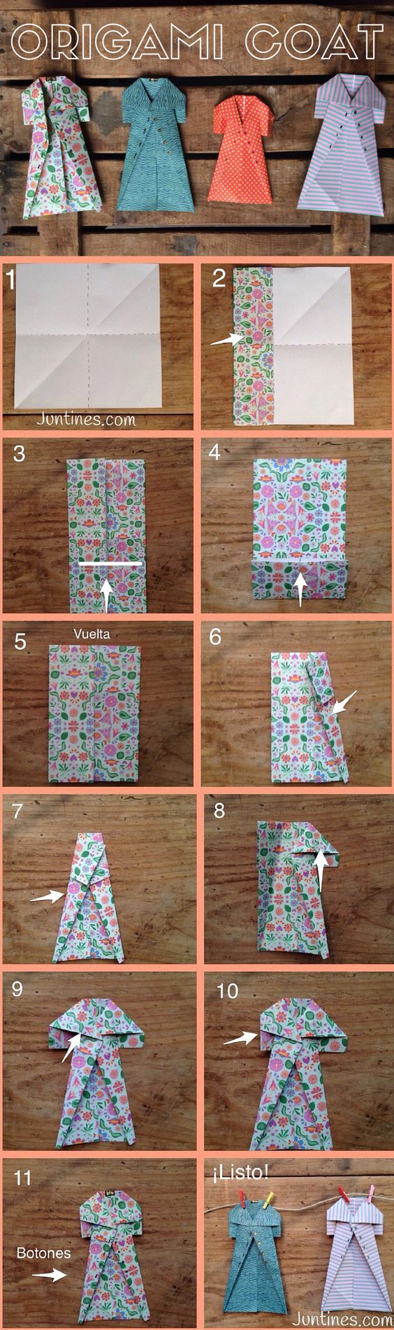 E guardate che carini i cappotti di carta: utilizzate vari pattern e giocate poi a stendere i panni come i grandi (un’altra attività super montessoriana, che insegna a raggiungere l’indipendenza imitando i gesti adulti!)