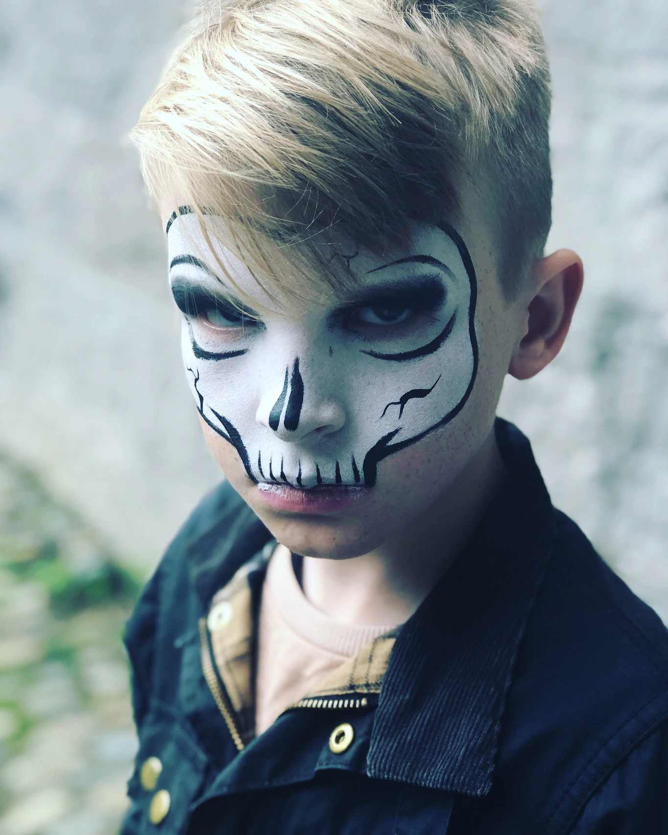 Infine, ecco il teschio: non serve nulla, solo del make up. Attraverso il trucco (con ombretti, matite occhi e labbra e tutto ciò che abbiamo nel beauty) possiamo disegnare sul volto un teschio pauroso e tenebroso! Et voilà. I vestiti? Niente di troppo ricercato. Una tuta nera con cappuccio farà il suo dovere.