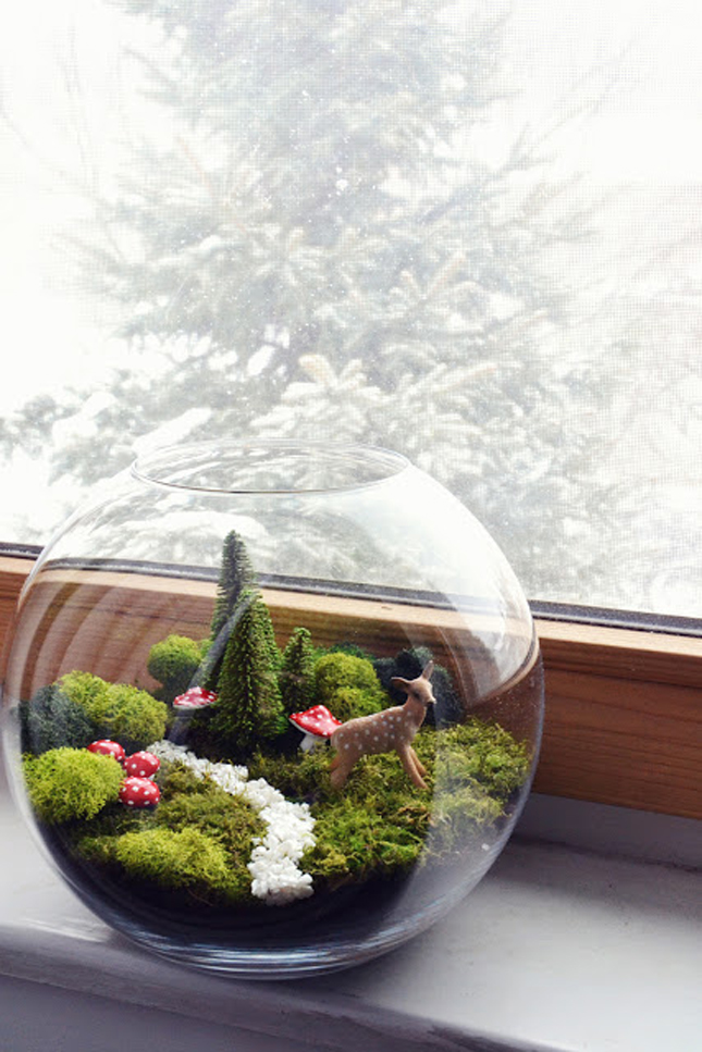 - Non solo in giardino: i terrari possono diventare uno strumento perfetto per realizzare un giardinetto che accolga tutte le fatine che si aggirano nei dintorni! Uscite di casa con i bimbi, raccogliete sassi, muschio e legnetti e in una boccia ricreate il perfetto habitat: sarà divertentissimo e appoggiato al davanzale starà benissimo.