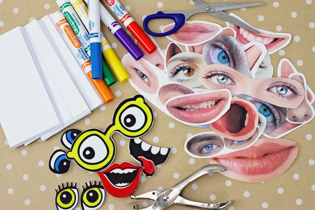 Partiamo innanzitutto dai fogli bianchi, dividendoli in tre gruppi. Su ognuno i bimbi dovranno disegnare (oppure incollare i ritagli di giornale, come un collage) gli occhi, i nasi e le bocche buffe che comporranno poi i volti.