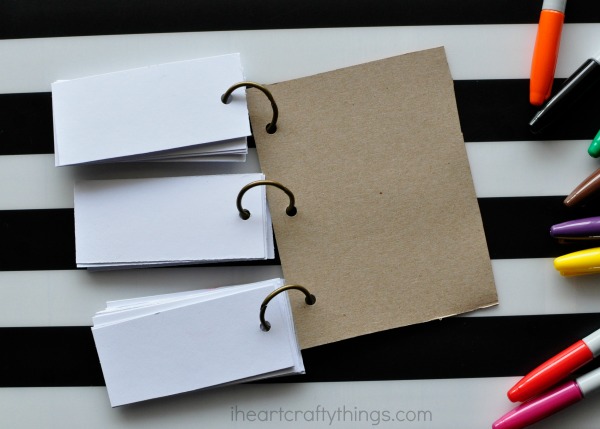 Buchiamo con la perforatrice ogni foglietto, al centro e sulla sinistra (per infilarci poi gli anelli per girare il libro). Prendiamo poi i cartoncini colorati e pesanti che formeranno la copertina ed eseguiamo 3 buchi esattamente dove andranno a finire i buchi dei foglietti quando andremo a posizionarli all’interno del libro.