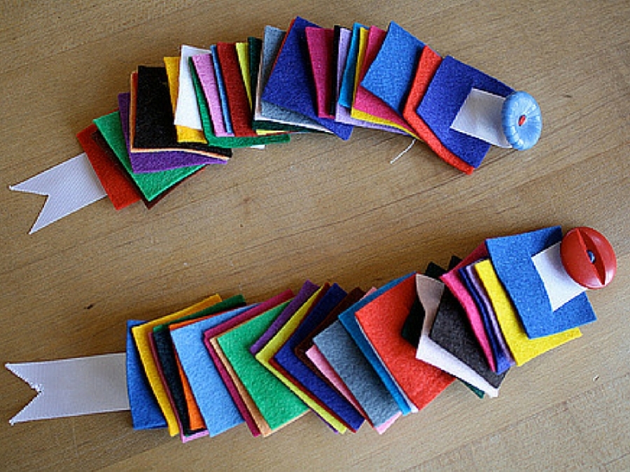 Le forme possono variare, così come i bottoni, i nastri e i colori. Potete creare serpenti di tutti i tipi e di tutti i materiali, così da stimolare allo stesso tempo l'esplorazione tattile!