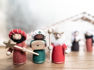 Ricordano un po' le bamboline steineriane: possiamo acquistare il presepe così, oppure scegliere degli omini senza caratteristiche e decorare i personaggi insieme ai bambini e alle bambine.