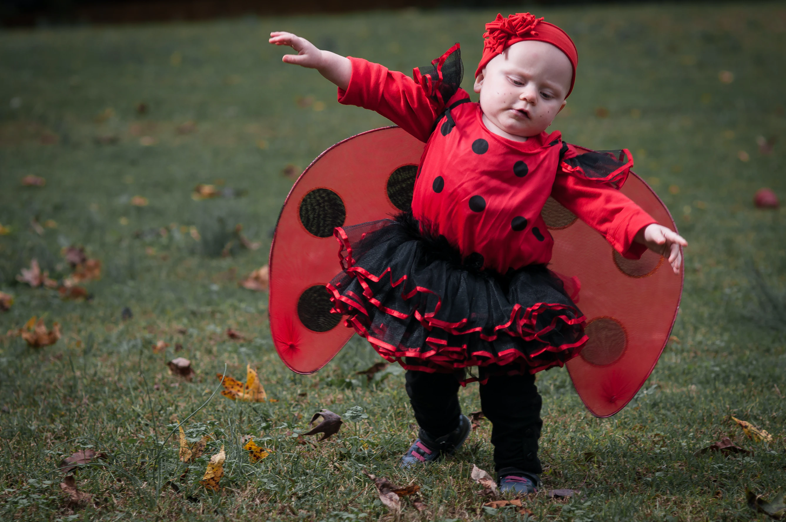 Non sempre le feste di Halloween sono stregate e paurose. A volte basta travestirsi con costumi meno horror. Come per esempio da insetto: ecco la coccinella.