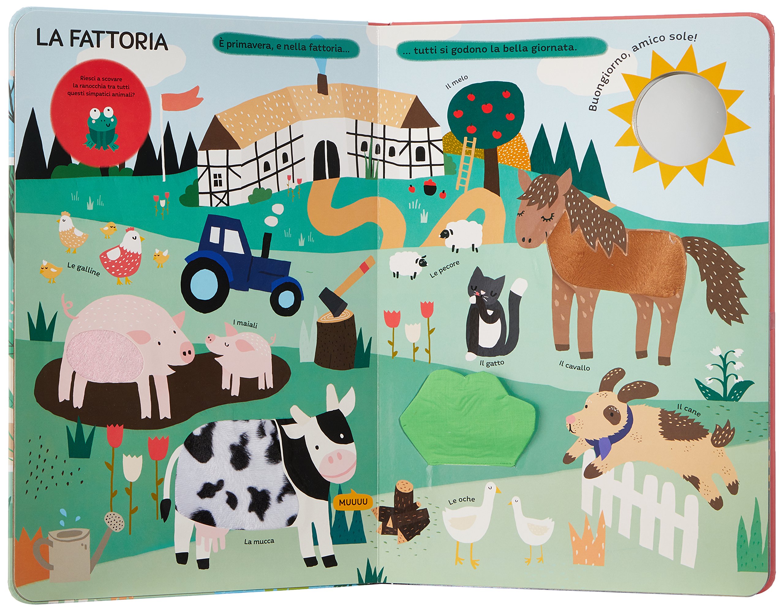 Lo troviamo qui e possiamo intenderlo quasi come un tappeto gioco per i più piccoli: aperto, infatti, questo libro permette di giocarci sopra, accarezzando gli animali e giocando con lo spazio.