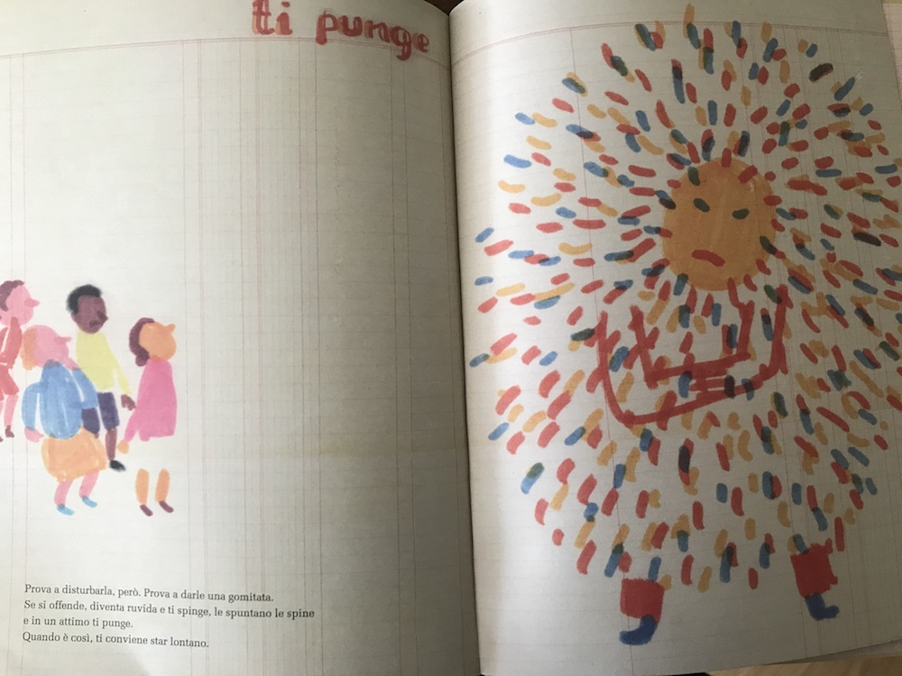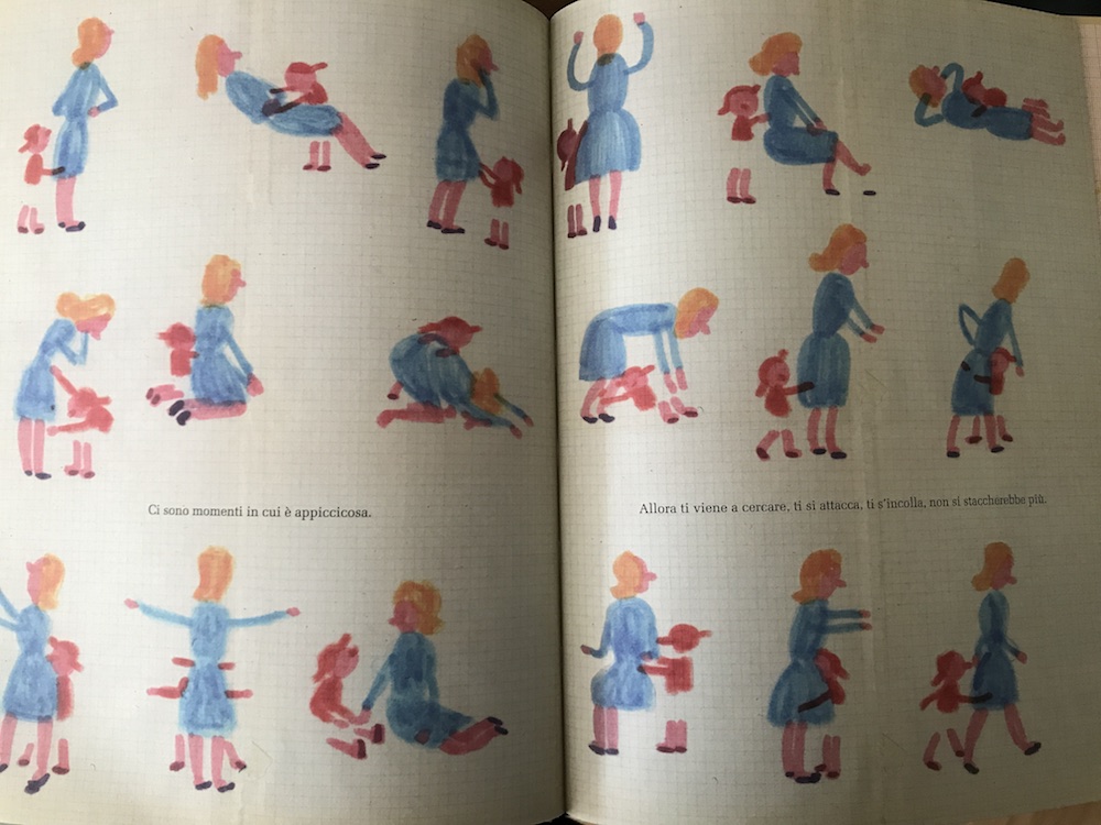 La bellezza del libro sta però anche nelle illustrazioni: i disegni sono a pennarello, proprio come quelli dei bambini, e come quelli dei bambini hanno un tratto infantile riconoscibile, intimo e accoccolante. Li vedi e ti riconosci, e si riconoscono i bambini. Sui quadretti, sulle righe, sulla carta millimetrata: lo sfondo è scolastico e davvero tenero.