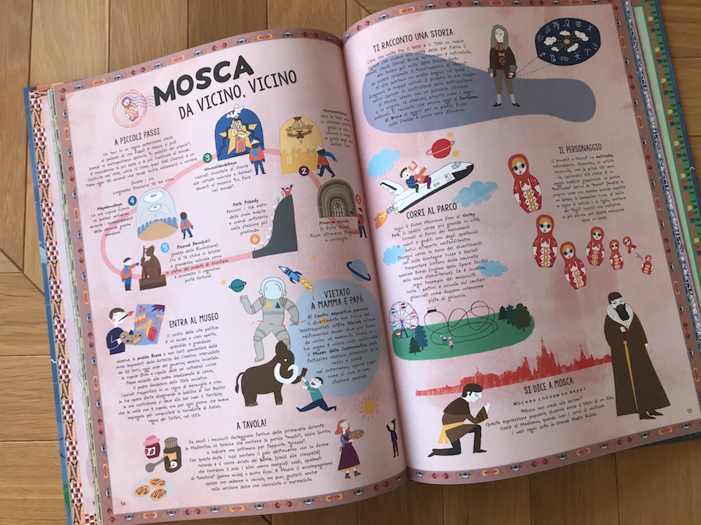 Il bello del libro è che ogni città è presentata in maniera deliziosa: si parte con una bellissima mappa illustrata che permette di girare la città attraverso le attrazioni, i fiumi, i musei e i luoghi più iconici, per passare alla sezione “la città da vicino vicino”. “Da vicino vicino” significa che le autrici hanno raccolto fatti e curiosità davvero meravigliosi, proponendoli ai bambini in maniera speciale e perfetta.