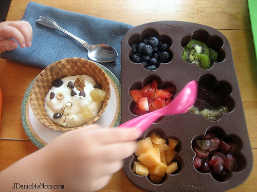 - Per lo stesso motivo la colazione con yogurt e scelta di frutta-topping è davvero utile per i bambini più piccoli. Lasciate loro riempire le muffin-tin con la frutta fresca a pezzetti e servite poi su un bel vassoio.