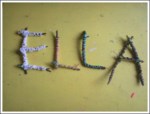 5. Invece di utilizzare le tessere montessoriane per imparare a tracciare le lettere, perché non tracciarle con ciò che la natura offre, come bastoncini, fiori e fili d'erba?