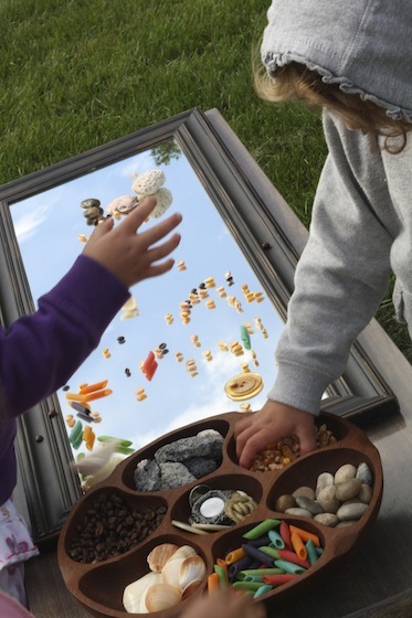 7. Per i bimbi più piccoli un elemento di conoscenza dell'io e del mondo è lo specchio (che non dovrebbe mai mancare nella cameretta, ad altezza bambino). Portandolo nella natura questo mondo da scoprire si farà ancora più interessante.