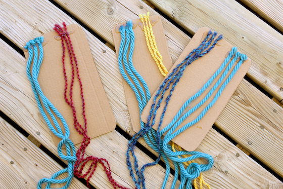 Possiamo poi utilizzare dei semplici ritagli di cartoncino rigido, ai quali incollare i fili con del silicone…