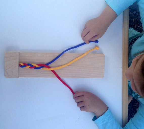 Non esistono solo i telai montessoriani per le allacciature. Esistono anche le tavolette delle trecce, altrettanto utili e bellissime da vedere.