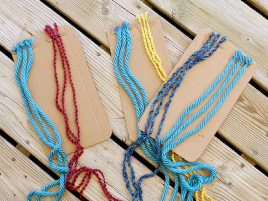 Il bambino semplicemente seguirà le istruzioni per realizzare la treccia, prima con l’aiuto dei genitori o degli educatori e poi piano piano da solo. Si può partire con quella classica, per arrivare a quelle più complesse, aggiungendo anche altri fili.