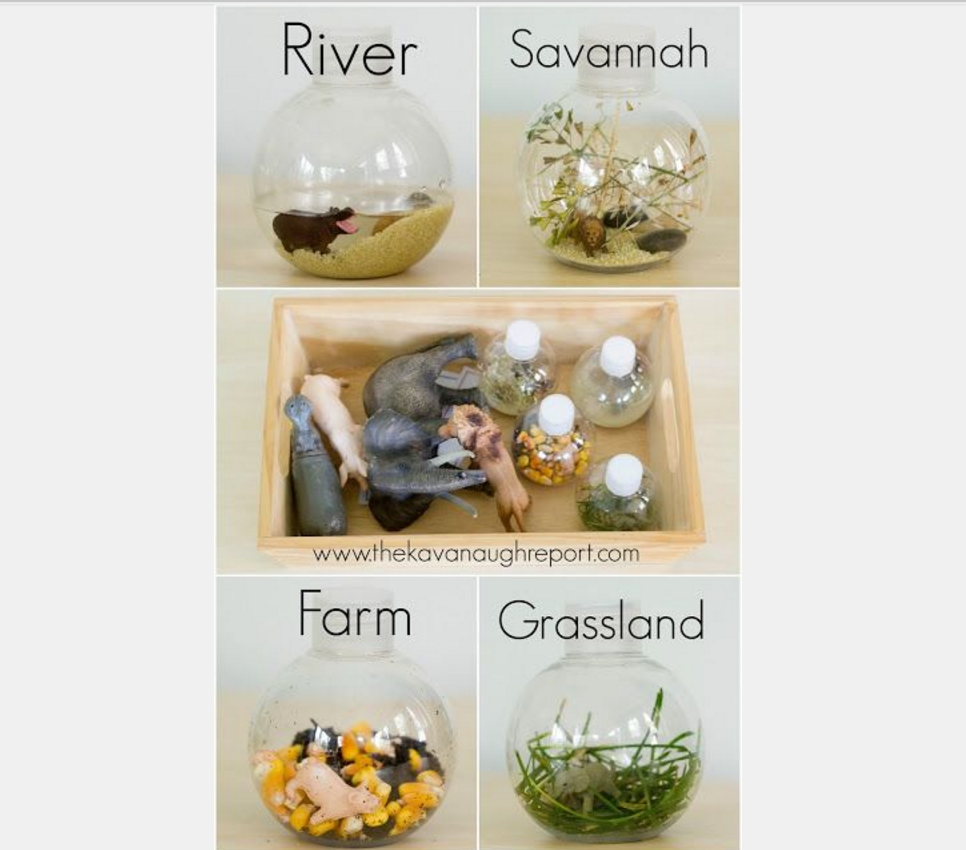 2. Ampolla sensoriale per riconoscere i diversi paesaggi della natura: la savana, il fiume, la prateria e la campagna