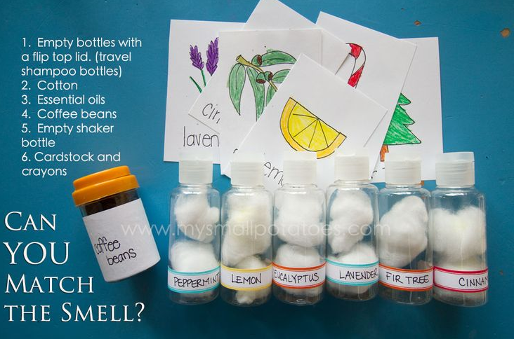 5. Bottiglie sensoriali con cotone imbevuto di aromi per riconoscere gli odori