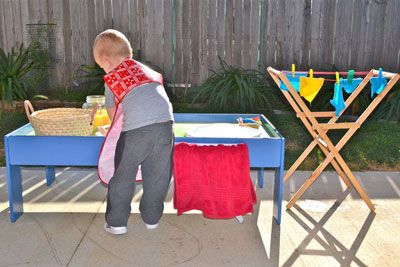 - Lezione fondamentale della pedagogista italiana è quella sulla vita pratica: al bambino è bene insegnare fin da subito, in piccolo (e cioè alla sua portata, in modo che sia comodo per le sue manine) le attività tipicamente adulte, come cucinare e piantare chiodi, in modo da sviluppare tanto la manualità quanto l'indipendenza. Tra le attività più divertenti c'è il lavare e stendere: nei giorni estivi potete quindi creare una piccola stazione "lavanderia" in giardino: una bacinella con i panni sporchi, una con acqua e sapone e un'altra per il risciacquo; e, naturalmente, un piccolo stendipanni per asciugare i tessuti al sole!